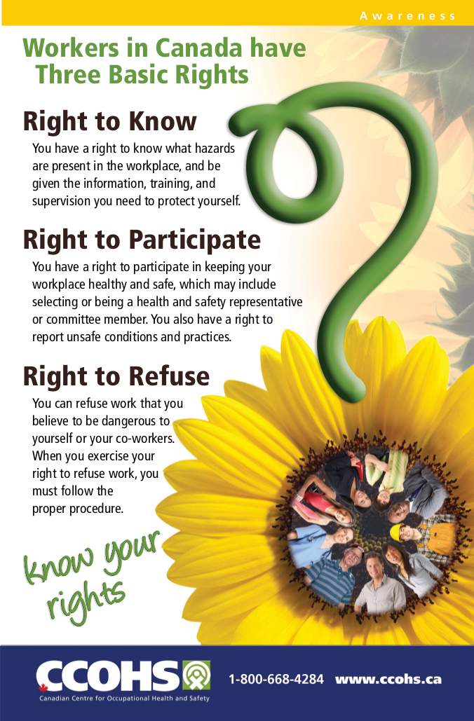 The Canadian Centre for Occupational Health and Safety (CCOHS) has released a poster in English and French outlining three indisputable rights that Canadian employees have in regard to workplace safety. Do you know what they are?