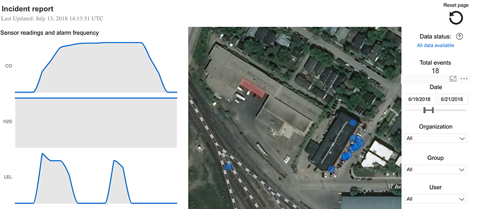 This report helps teams find out what happened during a specific incident that occurred at a particular point in time. The report displays gas readings during the time period that links to locations on a map, for easy comparison and visualization of the event. While this report helps to explore an incident for a single individual, other team mates can be added to the filter that helps to establish the order of events that occurred during the incident, and whether or not they were related.